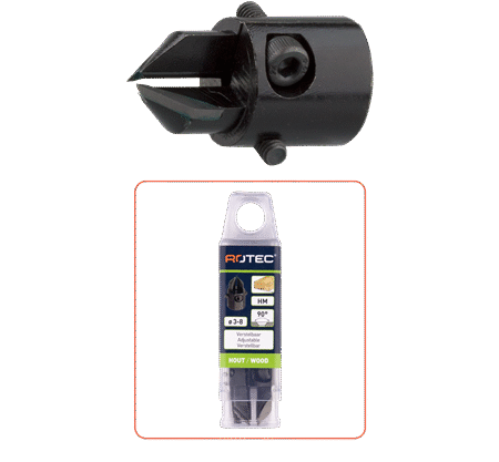 • Opsteek verzinkboor HM verstelbaar 3-8mm